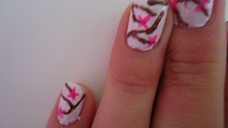 7. Seuraavaksi tehdään kukkaset. Jos sinulla ei ole lakkaa, jossa on ohut sivellin, niin käytä hammastikkua.