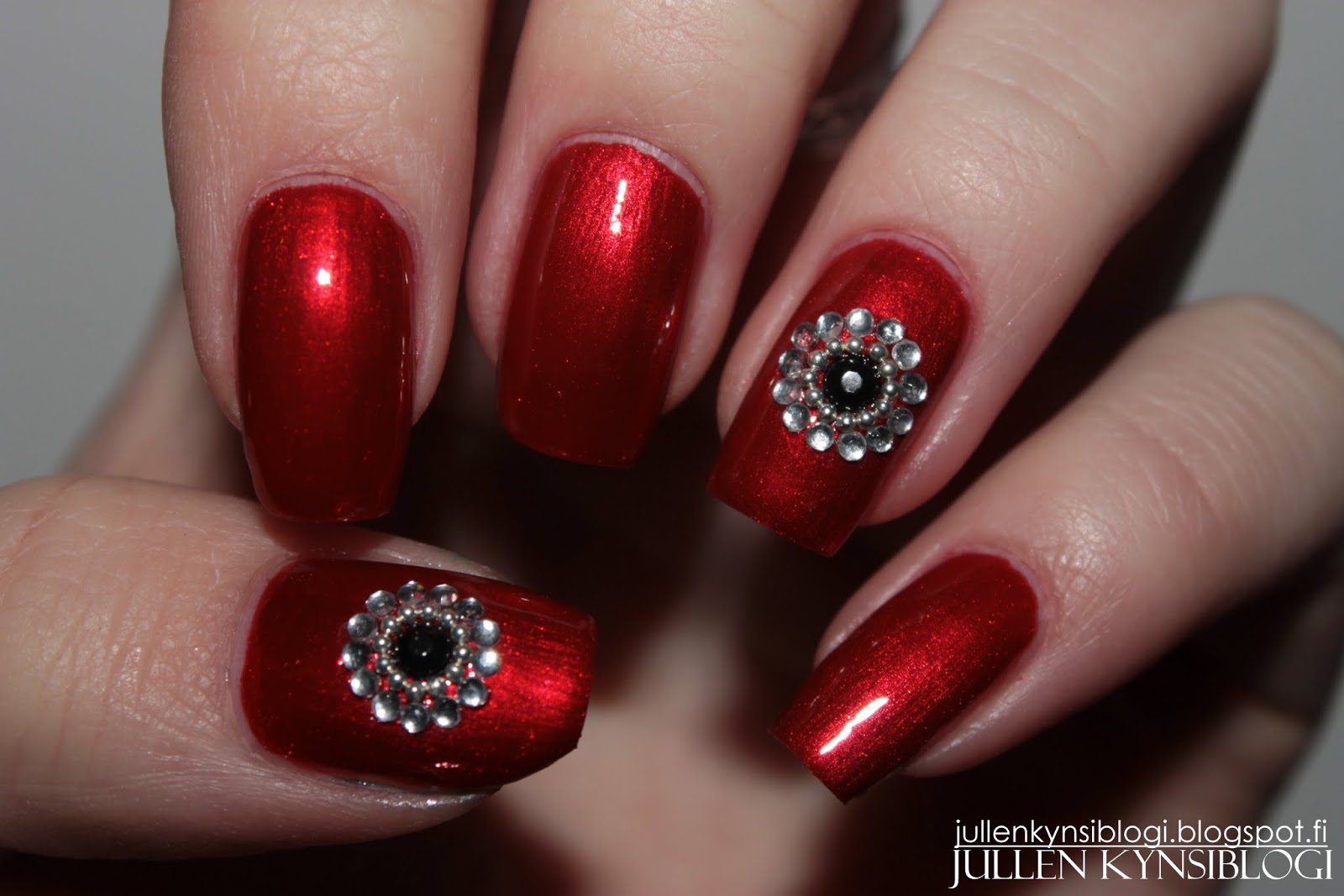 Lakoiksi valikoin Maybelline Mini Coloraman nimettömän vaaleanpunaisen lakan, Opin Princesses Rule! ja Oriflamen Glossy Taupen. Lisäksi otin vaaleanpunaisisa perhosdecaleita ja niittejä. Muista kynsistä tuli ihan kivat, etusormista en vain oikein välitä. Ehkä siitäkin olisi saattanut tulla kivempi, jos olisin laittanut kerroksen Princesses Rulea senkin päälle. Mutta olkoon nyt tälläiset viikonloppuun saakka. :)